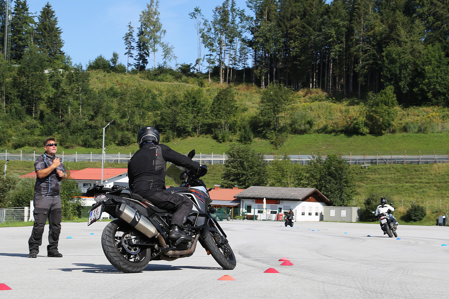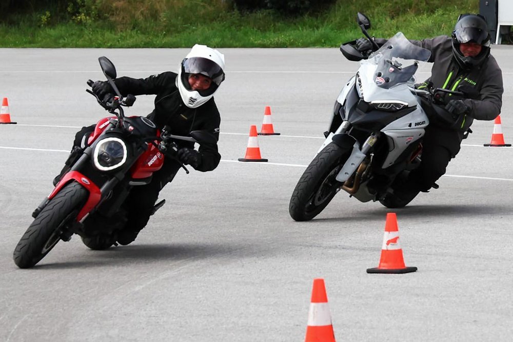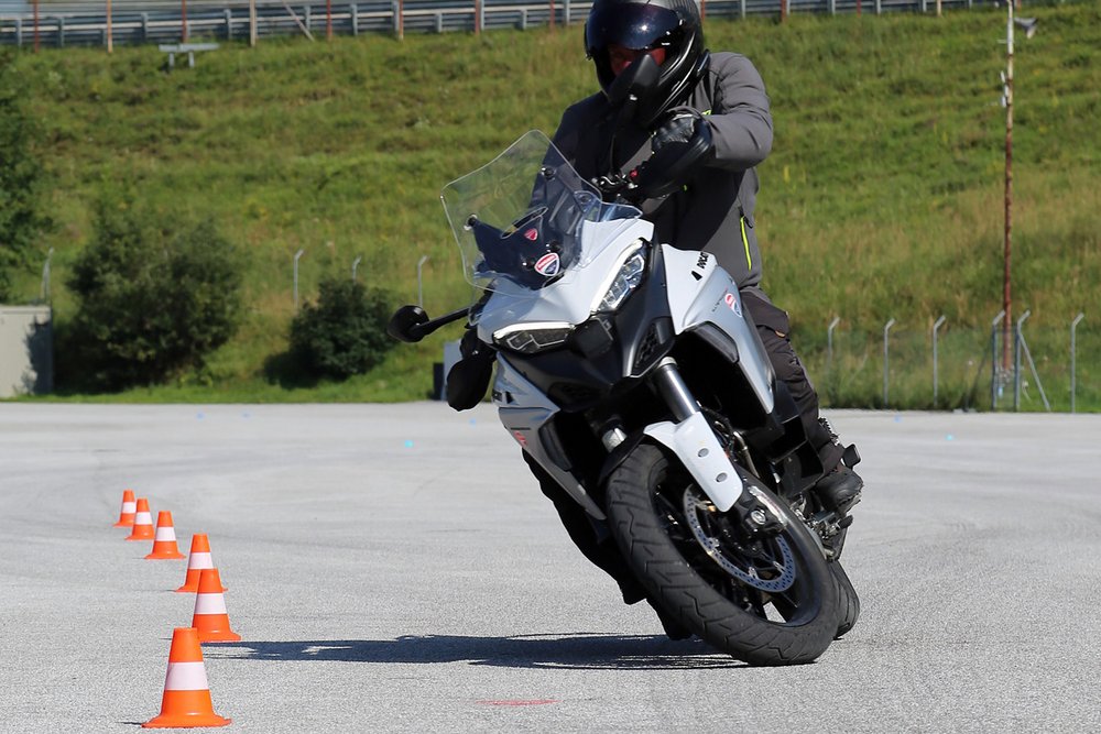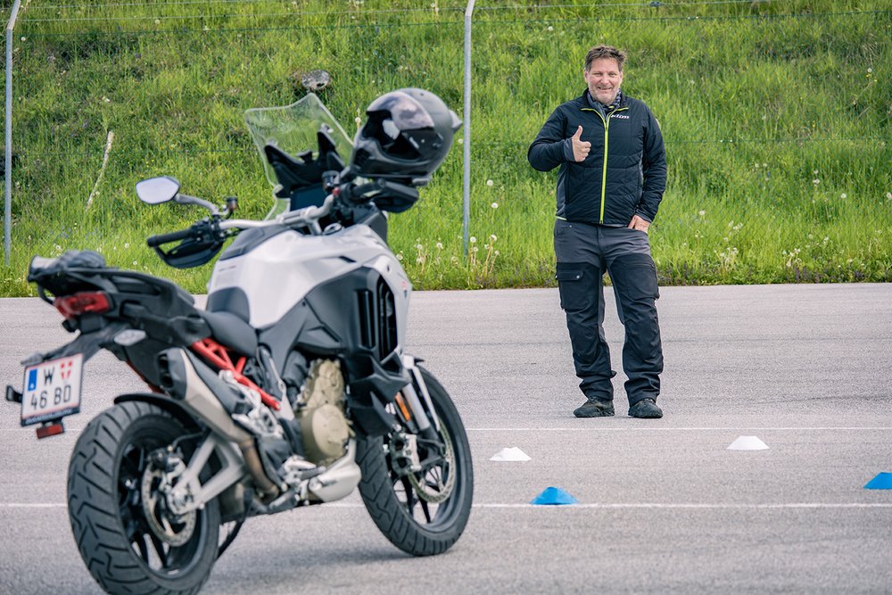 Das Training beginnt mit einer Gefahrenanalyse, um riskante Situationen frühzeitig zu erkennen und angemessen darauf zu reagieren. Es folgen gezielte Handlingübungen auf speziellen Parcours, Bremsübungen in Kombination mit Ausweichmanövern und das Trainieren der richtigen Blick- und Lenktechnik. Ein weiteres wichtiges Element des Programms ist das Wenden und Anfahren auf Steigungen. Ein weiterer Schwerpunkt des Trainings ist die Schutzkleidung. In diesem Bereich ist nach wie vor viel Aufklärungsarbeit notwendig, da viele Biker diesem Thema noch immer zu wenig Aufmerksamkeit schenken. Und eines sollte nie vergessen werden: Ausbildung muss nicht anstrengend sein – sie soll Spaß machen! Am Ende des Trainings wird jeder Teilnehmer ein noch sicherer und besserer Motorradfahrer sein.