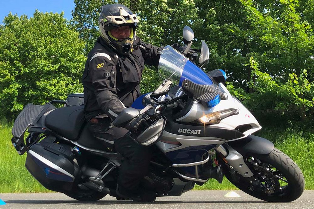 Man könnte in meinem Fall von einer „genetischen Veranlagung“ sprechen. Motorsport war bereits meinem Vater in die Wiege gelegt, und auch ich konnte diesem Erbe nicht entkommen. Schon in jungen Jahren entwickelte ich eine starke Affinität zu Motorrädern. In meiner ersten Motorradsaison, im Alter von 18 Jahren, legte ich solide 80.000 km zurück. Ich war fast nur auf dem Motorrad, niemals im Auto – egal ob bei Regen, Sonne oder Schnee. 1990 entschied ich mich für den Dienst bei der Polizei, und 1996 landete ich schließlich auch dort auf dem Motorrad. Heute bin ich seit mehr als 20 Jahren Bundesfahrtechniktrainer und damit verantwortlich für die Aus- und Weiterbildung aller motorradfahrenden Polizisten in Österreich. In dieser Rolle habe ich meine umfangreiche Erfahrung an hunderte Kollegen weitergegeben und konnte viele gute Motorradfahrer zu noch besseren, souveräneren machen.
